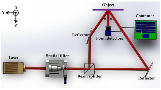 The principle of the in-plane displacement measurement used in this article is shown in Figure 2. When the object moves in the z-direction, the optical paths of both the reflected light and transmitted light change consistently [12]. Therefore, the speckle remains unchanged.