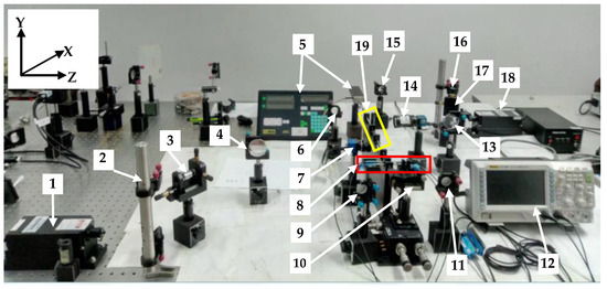 The translation stage (Thorlabs, NJ, USA) consists of the MAX302(/M) 3-Axis NanoMax Flexure Stage and three DRV3 Differential Micrometers, with a calculated fine resolution of 100 nm. The accuracy of the grating ruler is 0.1 μm.