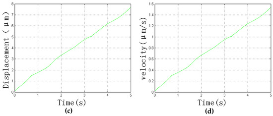 The displacement of the transmitter bar obtained by the CCD camera is shown in Figure 11. As can be seen from the figure, the displacement processed by our algorithm is 7.68 μm and the average velocity is 1.535 μm/s. Therefore, the measured error of displacement is 0.02 μm and the measured error of velocity is 0.005 μm/s. The relative error of displacement and velocity are 0.26% and 0.32%, respectively.