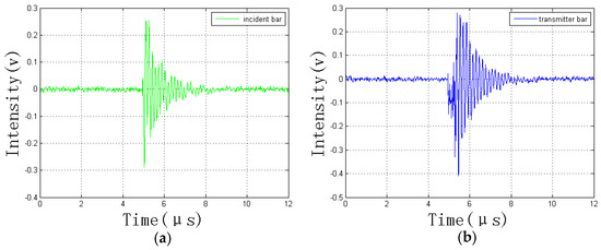 Original light intensity signal: (a) intensity of incident bar; (b) intensity of transmitter bar.