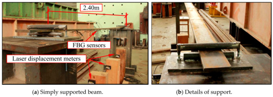 - Kim, N.S.; Cho, N.S. Estimating deflection of a simple beam model using fiber optic Bragg-grating sensors. Exp. Mech. 2004, 44, 433–439. [Google Scholar] [CrossRef]