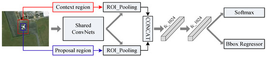 In this section, we design a new contextual model to better exploit contextual information for our remote sensing dataset. After generating the object proposals in the RPN stage, an ROI-Pooling layer is used to project each proposal onto the shared feature maps based on the strides of the network in the Fast R-CNN stage. The feature maps corresponding to each proposal are then encoded into a fixed-dimensional representation with a predefined spatial resolution. Following this, several fully connected layers are fed with these presentations for classification and class-specific bounding box regression.