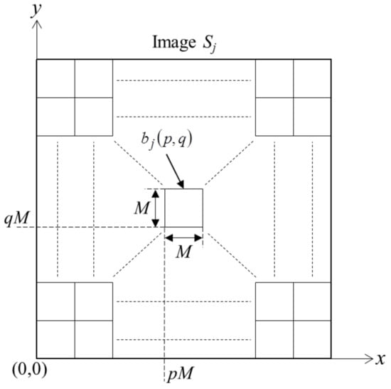 Subsequently, each reconstructed image is partitioned into a 2-D array of non-overlapping square image blocks of size , as shown in Figure 3. Without loss of generality, we assume that both the hologram and its reconstructed images are square in size, and having the same size , where is an integer multiple of . As such, there are blocks along the horizontal direction, and blocks along the vertical direction. Each image block in is represented by the block function , which includes the pixels bounded by the square within the region and . The EDF image to be determined is also partitioned in a similar way with each block of pixels denoted by .