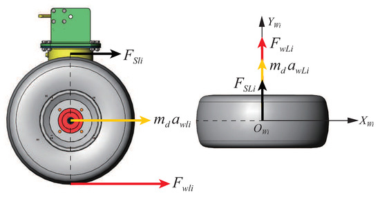 Finally, as per Figure 4b, the wheel dynamic equation indicating the relationship between and can be written as