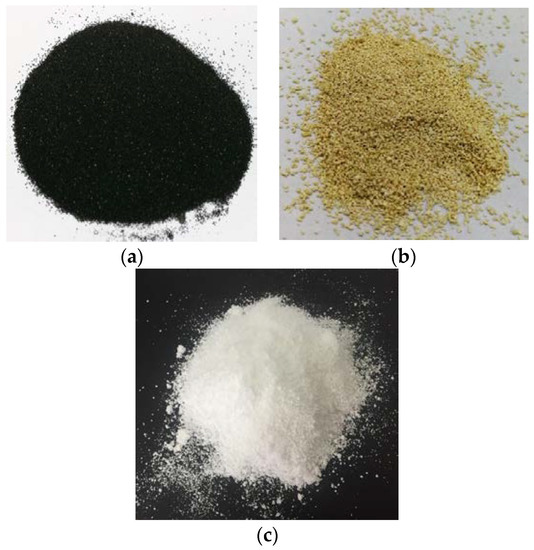 Materials: (a) Buton rock asphalt (BRA); (b) styrene–butadiene rubber (SBR); (c) Nano-CaCO3.