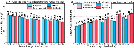 Further research should mainly focus on the following aspects. One is that it is more difficult to set the effective thresholds of RDTSN if the change trends of network performances are not obvious. The network mathematical model should be further improved to obtain better self-adaptive ability of energy consumption. The other is that DTMA sometimes cannot achieve ideal overheads and hop count in simulations. A multi-factor analysis needs to be performed on the control of the replication and forwarding of messages. It is noteworthy that all wireless nodes use IEEE 802.11n as the communication protocol in the simulation and field experiments of this paper. Although it provides a high data rate, it has a great energy consumption. In subsequent studies, we will try to use similar IEEE 802.15.4 protocol to obtain a lower energy consumption. In addition, we are ready to use RDTSN and DTMA for real tests in the actual scenarios (the scenarios simulated in this paper).