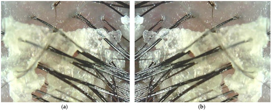 In this work, we use a 200× magnification camera to take scalp images as shown in Figure 19. The scalp examples are sorted into four groups: bacteria type 1, bacteria type 2, allergy, and dandruff groups as shown in Figure 20a–d, respectively.