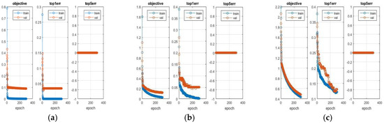 (a) Learning rate is 1 × 10−4; (b) learning rate is 1 × 10−5; (c) learning rate is 1 × 10−6.