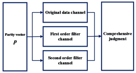 As is shown in Figure 4, each channel operates independently and does not affect each other. The procedures are classifying the faults according to their amplitude first, and then sending them to different fault detection channels. The original channel filter detects hard fault, the first-order channel detects medium fault, and the second-order channel detects soft faults.