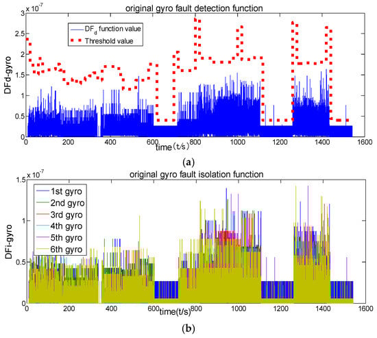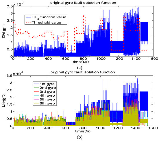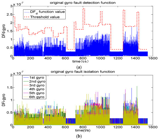 However, the existing approaches cannot detect soft fault correctly after quantization. The angle increment is converted into the number of pulses of the laser gyroscope which has a measurement output. This output is not a real angular velocity but rather the angular increment of the sampling period and the quantization value of the pulse. Similarly, the accelerometer’s output is not a real-time apparent acceleration but the sampling period of the speed increment and its quantization value. The quantization of the laser gyroscope and the accelerometer may disturb the error structure of the original information and bring many transient errors for low maneuvers, which may cause difficulty in fault detection. Yi [16] only introduced the low-pass filter concept and combined the generalized likelihood test (GLT) method for fault diagnosis.