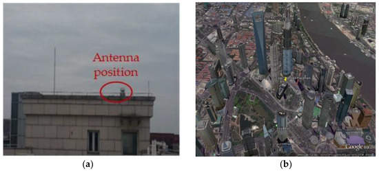 GNSS antenna position (a) open sky (rooftop) (b) urban canyon (downtown Shanghai).