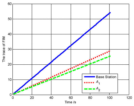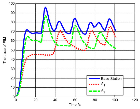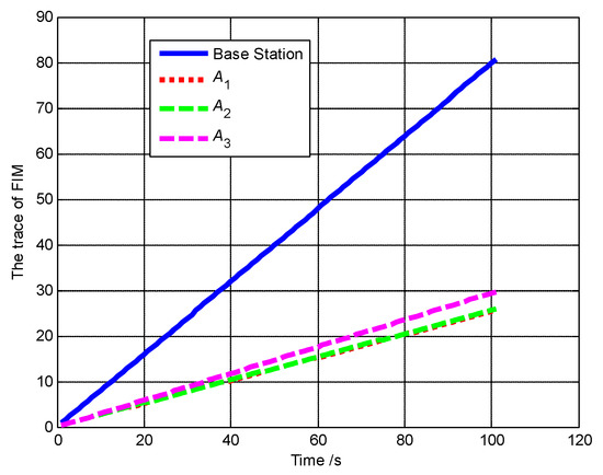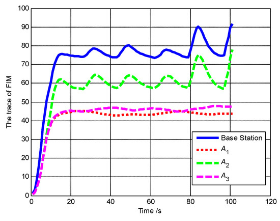 The trace of FIM of A1, A2, A3 and base station (Scenario 4).