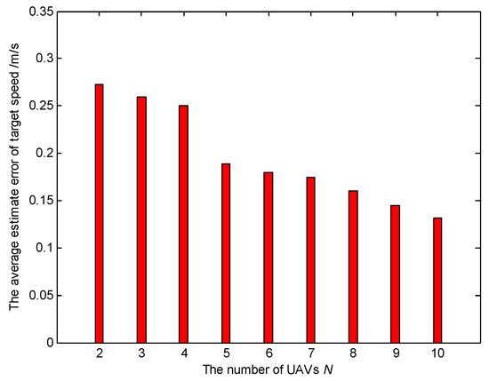 The average estimation error of target speed for different numbers of UAVs (Scenario 5).