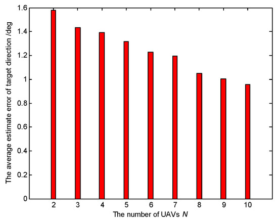 The average estimation error of target direction for different numbers of UAVs (Scenario 5).