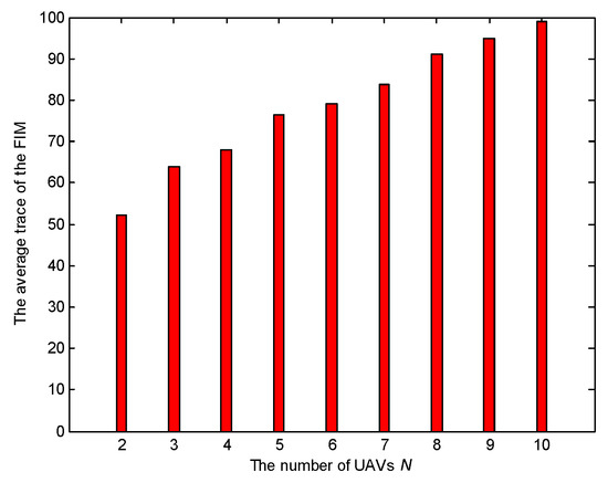The average trace of the FIM for different numbers of UAVs (Scenario 5).