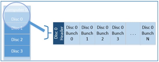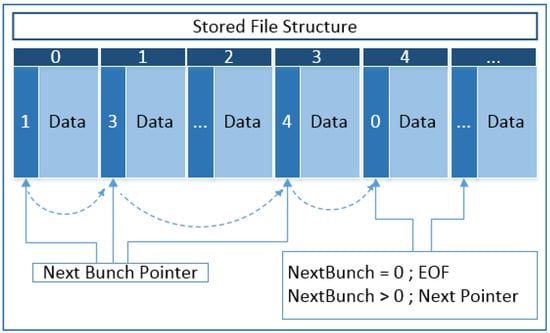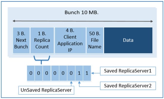 In the designed system, a disc consists of data sets called the ‘bunch’ and ‘disc header’. The disc header holds the number of bunches found in that disc and whether the bunch is empty with the bitmap structure. A bunch holds the next bunch, the replicas of the data, the IP of the client application that loads the data, and the data itself. Using the designed file system, every bunch can point to the next bunch which is a member of the file chain.