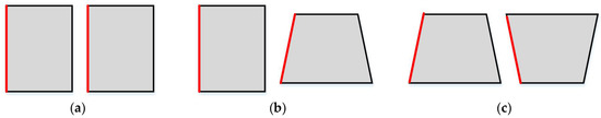 - The number of line segments extracted from rectified images is less than that of original images. Because rectified images are resampled and their quality is lower than that of original images, the extraction effect will be worse. At the same time, their effective trapezoidal contents are smaller than the original images’ rectangular contents. For a line extraction algorithm such as LSD, the line segments smaller than a certain length threshold is not used (the threshold value in this algorithm is set to 20 pixels), so some line segments that are compressed to be shorter are discarded.