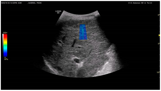 Transient elastography is a non-invasive and rapid bedside method used to assess liver fibrosis by measuring liver stiffness. The technique has been described in detail in the European Federation of Societies for Ultrasound in Medicine and Biology (EFSUMB) and World Federation for Ultrasound in Medicine and Biology (WFUMB) guidelines [1,2,4,6,45] and also by others [46]. TE has been used for liver stiffness measurement (LSM) both in children and adults [1,2,47,48]. Figure 1 shows the values obtained with TE in a newborn.