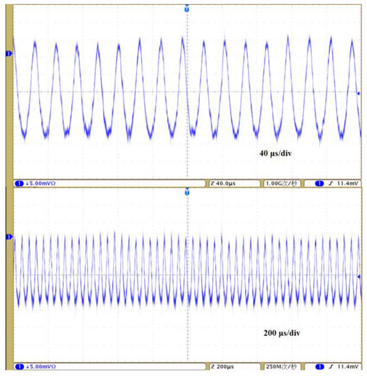 The pulse trains in 40 μs and 200 μs time scales.