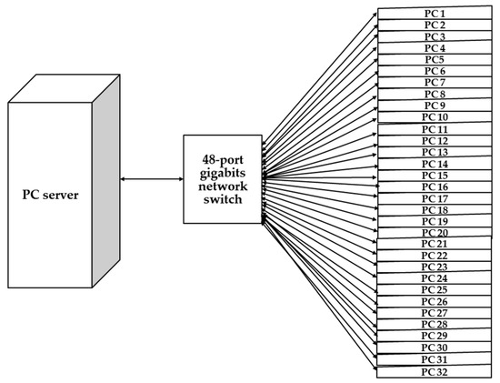 The PC clients were connected to the Cisco network switch with the Category 5e network cables, as shown in the schematic Figure 6.