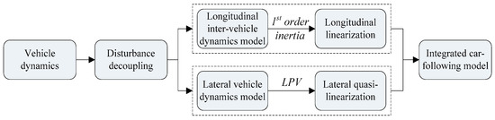 15] is employed, by which longitudinal and lateral dynamics can be completely decoupled. After that, the longitudinal inter-vehicle model and lateral dynamics model are derived, as well as linearized, respectively. Finally, the integrated car-following state space model based on the MPC framework is designed.