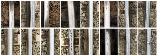 The brightness of images is non-uniform because of uneven natural light, the reflectance properties of rail surfaces [42], vibration of UAVs, or any other environmental factors. Therefore, defects and backgrounds are always mixed together. According to our experience, the following characteristics of UAV rail images occur: