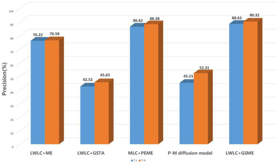 Although the GSTA method enhances image contrast, it can’t repress interference of noise effectively. These three methods acquire poor segmentation effects because they are susceptible to noise and background points. In contrast, LWLC+GSME not only achieves contrast enhancement between defects and background, but also obtains the best segmentation effects. For example, LWLC+GSME achieves a precision of 88.63% for T-I defects and a precision of 90.32% for T-II defects. It should be noted that both of MLC+PEME and LWLC+GSME obtain similar effects for precision, because they see non-defect regions as defect under light disturbance (such as uniform illumination and low contrast).