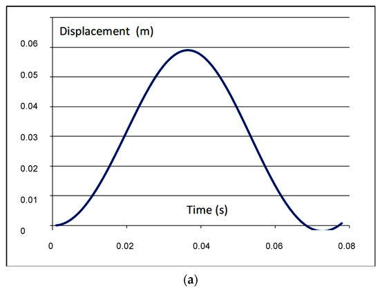 Umax = 2 × Ustatic = 2 × (10,000/332,595) = 0.0601 m, which is a result close to the amplitude vibration calculated with the Newark algorithm as observed in the graphical results of Figure 11. The results show the accuracy of the method, where the amplitude of the vibrating system is double that of the static deflection. Also, the natural period T0 of this SDOF model (calculated with the averaged stiffness of the spring) is T0 = 0.077 s, which is also in good agreement with the numerical result in Figure 11.