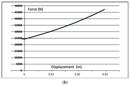 This internal reaction force Rt can be measured with a load cell inserted between one end of the spring and the ram of the displacement actuator mounted in the test rig. The evaluation of the spring stiffness Kt at each time step t is carried out upon recording the consecutive values of the internal reaction force, respectively, at instants t and +Δt calculating the tangent stiffness Kt+Δt by Equation (22):
