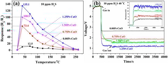 - Hu, X.B.; Zhu, Z.G.; Chen, C.; Wen, T.Y.; Zhao, X.L.; Xie, L.L. Highly sensitive H2S gas sensors based on Pd-doped CuO nanoflowers with low operating temperature. Sens. Actuators B Chem. 2017, 253, 809–817. [Google Scholar] [CrossRef]