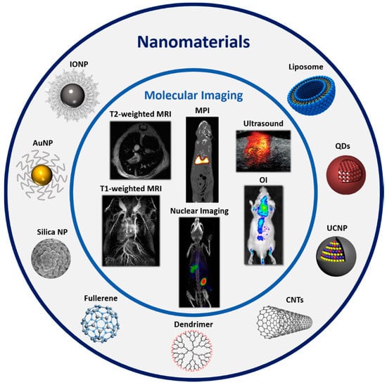 Besides the above mentioned nanoprobes, many other nanoparticle types have been developed for MI. Examples of these include Au nanoparticles [149,150], dendrimers [151,152], carbon nanotubes [153,154], or silica nanoparticles [155,156].