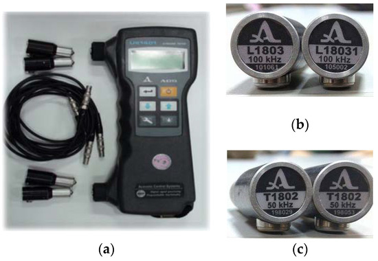 - Malhotra, V.M.; Carino, N.J. Handbook on Nondestructive Testing of Concrete, 2nd ed.; CRC Press: Boca Raton, FL, USA, 2003. [Google Scholar]