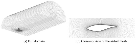 The mesh used in this work was created by the bladeBlockMesher (BBM) developed by Rahimi et al. [25] for the automatic mesh generation for wind turbine rotor blades. The grid quality and validation based on the NREL Phase VI turbine is also shown in their publication. In this work, a grid with 5.2 million cells is used with a -value below 1. A symmetry plane is used to exploit the symmetry of the two bladed rotor. In Figure 2 the domain and the mesh around a cut along the chord of the blade is shown.