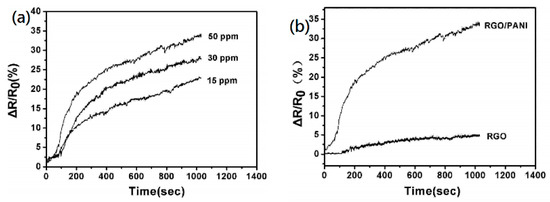 - Huang, X.; Hu, N. Reduced graphene oxide–polyaniline hybrid: Preparation, characterization and its applications for ammonia gas sensing. J. Mater. Chem. 2012, 22, 22488–22495. [Google Scholar] [CrossRef]