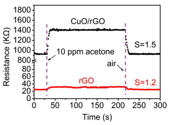- Wang, C.; Zhu, J. Reduced graphene oxide decorated with CuO-ZnO hetero-junctions: Towards high selective gas-sensing property to acetone. J. Mater. Chem. A 2014, 2, 18635–18643. [Google Scholar] [CrossRef]