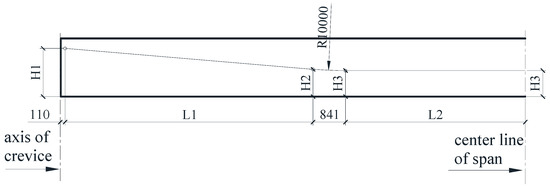 The prestressed tendons were tensioned when the concrete age exceeded 28 days. Prestressing is mainly controlled by the digital reading of the jack placed on the anchor, and the elongation is used for checking. The stretching control stress was 1361 MPa, and the elongation is shown in Table 2. The geometric dimensions are shown in Figure 3 and the values of the parameters are shown in Table 3.