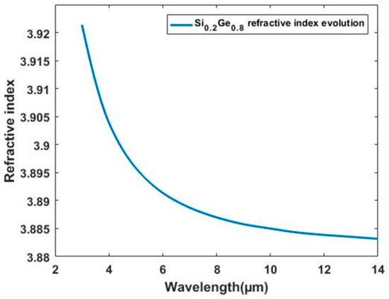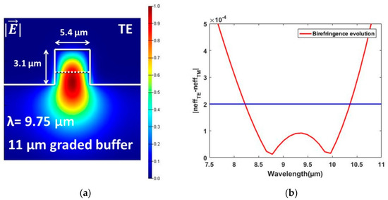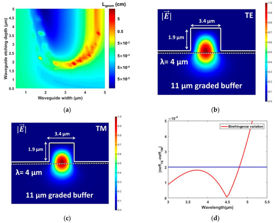 - Ramirez, J.M.; Vakarin, V.; Frigerio, J.; Chaisakul, P.; Chrastina, D.; Le Roux, X.; Ballabio, A.; Vivien, L.; Isella, G.; Marris-Morini, D. Ge-rich graded-index Si 1-xGex waveguides with broadband tight mode confinement and flat anomalous dispersion for nonlinear mid-infrared photonics. Opt. Express 2017, 25, 6561–6567. [Google Scholar] [CrossRef] [PubMed]