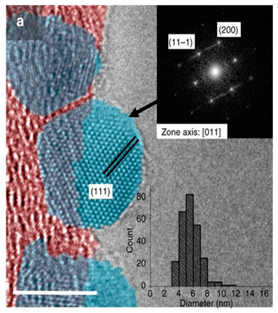 Electron micrographs (Figure 8) unveiled the drastic difference between the intimate contact at the interface of Pd particles on defective carbon surfaces, including heteroatom and topological defects, and the undamaged grain boundary of Pd NP supported on an undoped graphitic surface [69].
