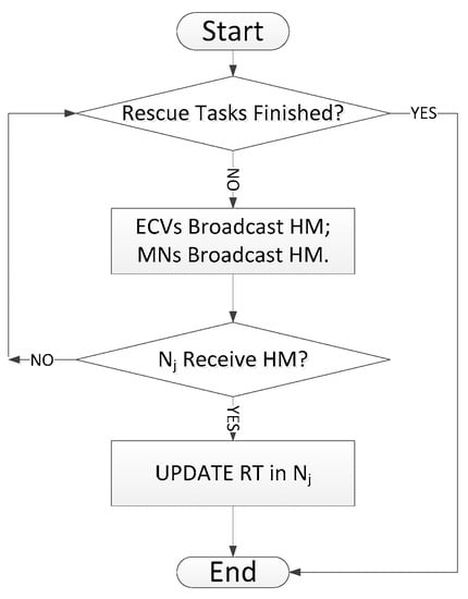 Figure 2 describes the initialization procedure of MCDM-ECP. Routing discovery and routing maintenance are included in this process. In the rescue tasks, ECVs and Mobile Nodes (MNs) broadcast their own Hello Messages (HM) frequently for routing discovery. The data format of the HM message is illustrated in Table 2.