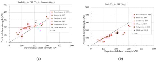- Chen, J.F.; Teng, J.G. Shear capacity of fiber reinforced polymer- strengthened reinforced concrete beams: Fiber reinforced polymer rupture. J. Struct. Eng. 2003, 129, 615–625. [Google Scholar] [CrossRef]