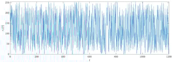 The authors in [] propose an improved version of the PLCM, called Modified Piecewise Chaotic Map (MPLCM). They report an information entropy of 7.9972–7.9976. This result overcomes the 7.8472–7.9413 reported in []. The MLPCM is defined in (6) and a simulation is shown in Figure 2.