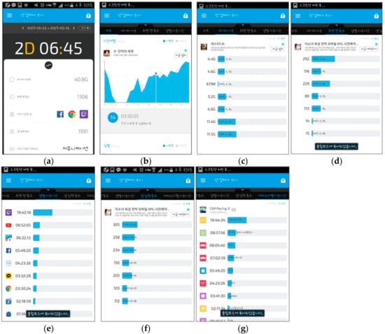 4], the phone usage pattern can be easily analyzed by measuring the usage time of the smartphone, time spent using apps by category, and number of times the apps were executed. Furthermore, Lee [