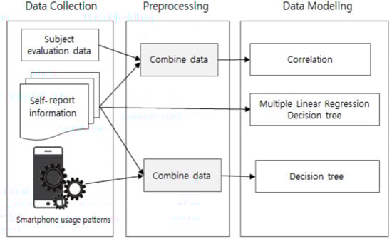 Figure 2; it involves combining self-reported data (via questionnaires), collected data from users’ smartphones, data mining for analyzing the effect of smartphone addiction on users, and finally, learning achievement.