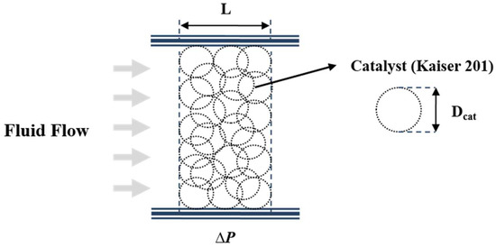 Figure 3, and the pertinent Ergun equation is written as Equation (7) to account for the pressure drop caused by fluid resistance.