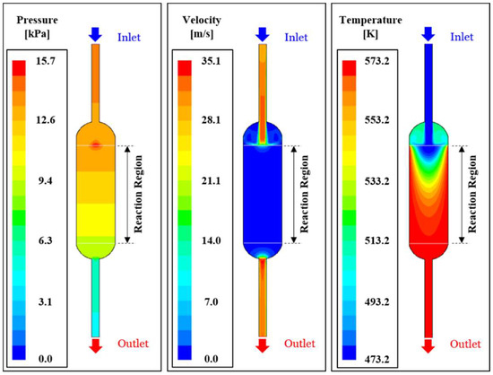 Figure 4 illustrates heat and fluid flow analysis results for reference modeling (GHSV = 1.0, length ratio = 1.0, Temperature = 573 K).