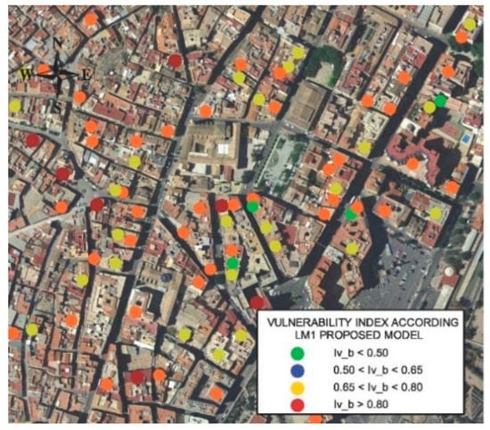 In this sense, the graphical picturing of vulnerability indexes and expected damage in buildings, through a geo-referencing process, makes it possible to recognize the most vulnerable areas of the city and planning different ante-earthquake emergency scenarios (see Figure 5).