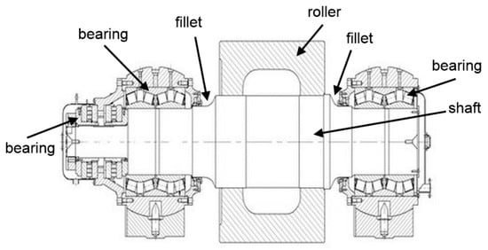 In the repair shop, measurements were made to determine attenuation and propagation velocity of the acoustic signal on the decommissioned support block with the end caps removed. To simulate the sources of AE, an electronic simulator was used. The emission was produced on the shaft in the region of the fillet and at the ends of the shaft, as well as on the inner and outer rings of the bearings (Figure 18).