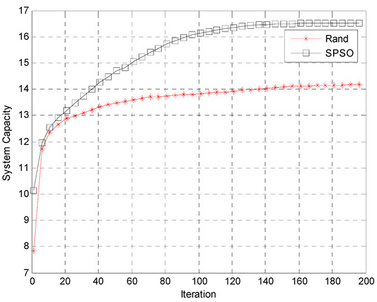 Figure 5 shows the comparisons between RPSO and SPSO. In Figure 5, it is shown that RPSO converge to the optimal solution more quickly compared to the SPSO algorithm for K = 12. Moreover, for K = 18 and K = 24, the system capacity of RPSO outperforms SPSO.