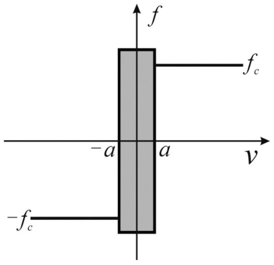 The working principle of the y-axis is similar to the x-axis motion when the 2-DOF PIDMs are driven independently. Because the two motions share a common friction interface, the coupled motion will exist when the two PAs are working together. The study of friction distribution and the value in the x-axis and y-axis of a 2-DOF PIDM is very import. The Karnopp friction model is often used to analyze the friction force in a 1-DOF PIDM, as shown in Figure 3. A zero velocity interval is defined from −a to a; then, the Karnopp friction model [] of a 1-DOF motion is described as follows: