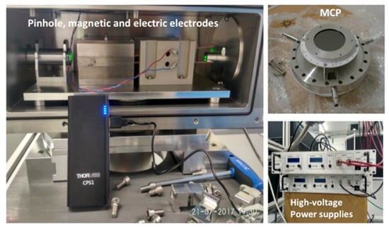 Figure 3 shows the configuration of the pinhole, magnetic, and electric electrodes together with the laser alignment system, the micro channel plate, and the high voltage power supplies.